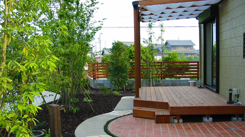 陽射しの強い日でも、お庭の高木とオーニングが適度な日陰を演出。森林浴を楽しみながら会話もますます弾みそうです。