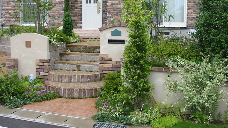 エントランスガーデンではお客様を自然に建物の玄関まで迎え入れるまでの導線があり、その導線上の両脇に草花が顔を出しお客様を奥へと誘導してくれます。