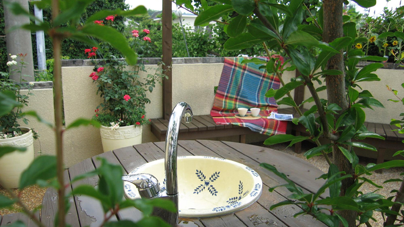 実用的なガーデンシンクとカウンターテーブルを作りつけ、ゲストを呼んでのガーデンパーティーを楽しんで頂ける空間に仕上げました。