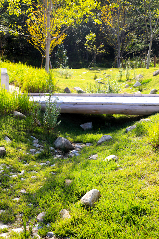 草丈の高いチガヤで少し目線を遮り先に何があるのか気になるような仕掛けや、草丈の低いノシバで自然に創出された道のようなレイアウトにした。
