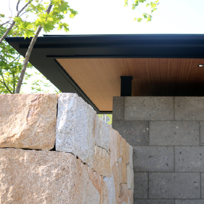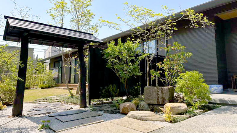 既存の樹木や景石・灯籠などを多く活用し、再度命を吹き込むことで、新しい庭園風景やファサードをつくり出す工事となりました。歴史のある長屋門や、大きく育った木を多く解体伐採した工事でしたので、新しくつくリ上げる長屋門やお庭も、格式さや古きを生かしたものにする必要がありました。